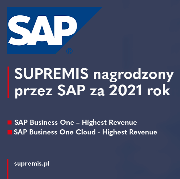 Po raz kolejny SUPREMIS wyróżniony nagrodą za najlepszego partnera w Polsce i regionie CEE za produkt SAP Business One.